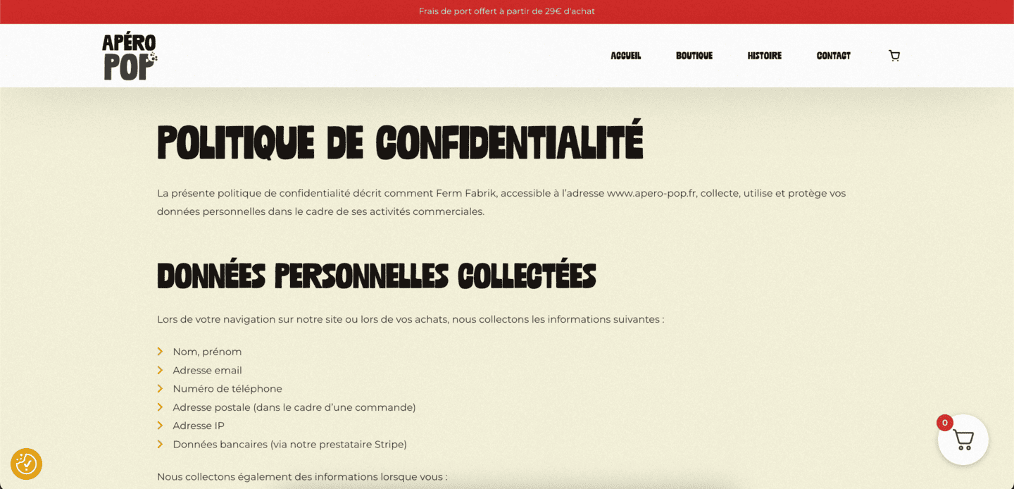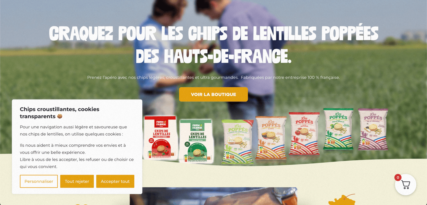 Imaginons Apéro Pop, un petit site e-commerce alimentaire qui vend des chips de lentilles (oui, c’est un site web que j’ai créé 😉) :